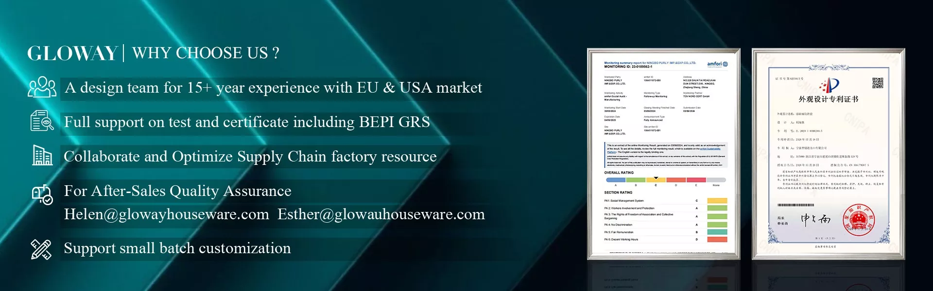 Ningbo Purly Im. & Exp. „Co., Ltd.“ yra Ningbo mieste, kuriam patinka gera eksporto aplinka ir patogus eismas į Ningbo jūros uostą. Kai įrenginio plotas yra 3000 m², o I S O 9 0 0 1 ir B S C I sertifikatas, galime patenkinti visus jums reikalingus gamyklos audito reikalavimus.