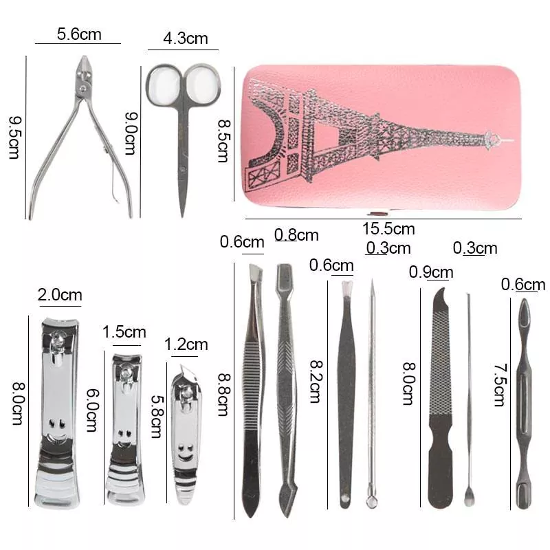 14 vnt, įskaitant nagų pjaustytuvus, nagų failą, ausinę, žirklę |