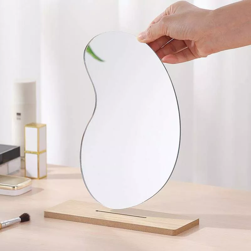 Pagamintas iš aukščiausios kokybės HD stiklo, netaisyklingas banguotas stalviršio veidrodis be iškraipymų, ryškiai atspindi tiksliai makiažą, odos priežiūrą ir kasdienę priežiūrą. Užtikrina aiškų vaizdą ir nepriekaištingą makiažo rezultatą.