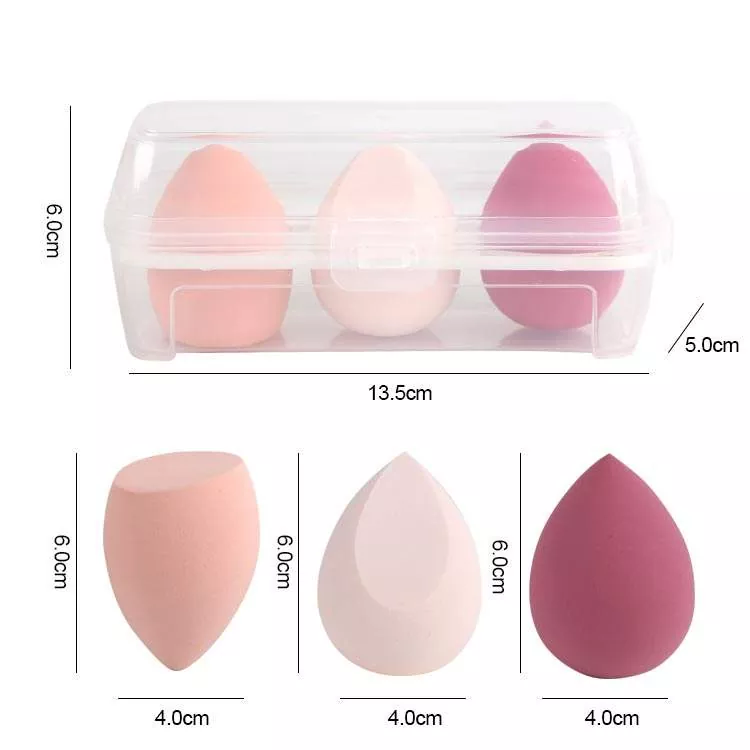 Šiame makiažo kempinės 3 vnt rinkinyje su dėklu yra minkštos, odai nekenksmingos ne latekso kempinės, įvairių formų ir pastelinių atspalvių. Vandeniu aktyvuojami, kad būtų be dryžių, purškiama danga, jie tiekiami su apsauginiu dėklu, kad išliktų švarūs ir nešiojami, kad būtų galima taisyti keliaujant.