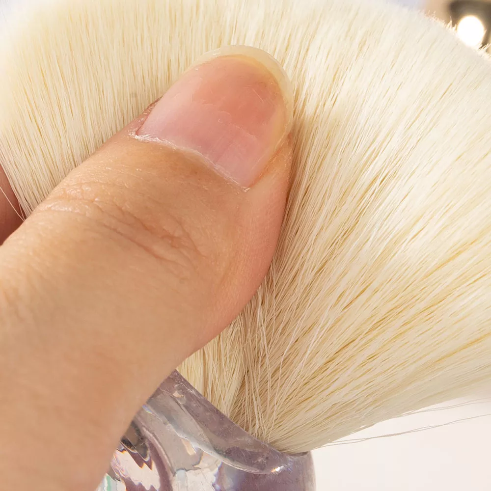 Plastikinė rankena ir pluoštiniai plaukai |